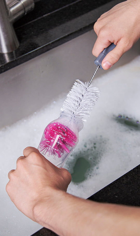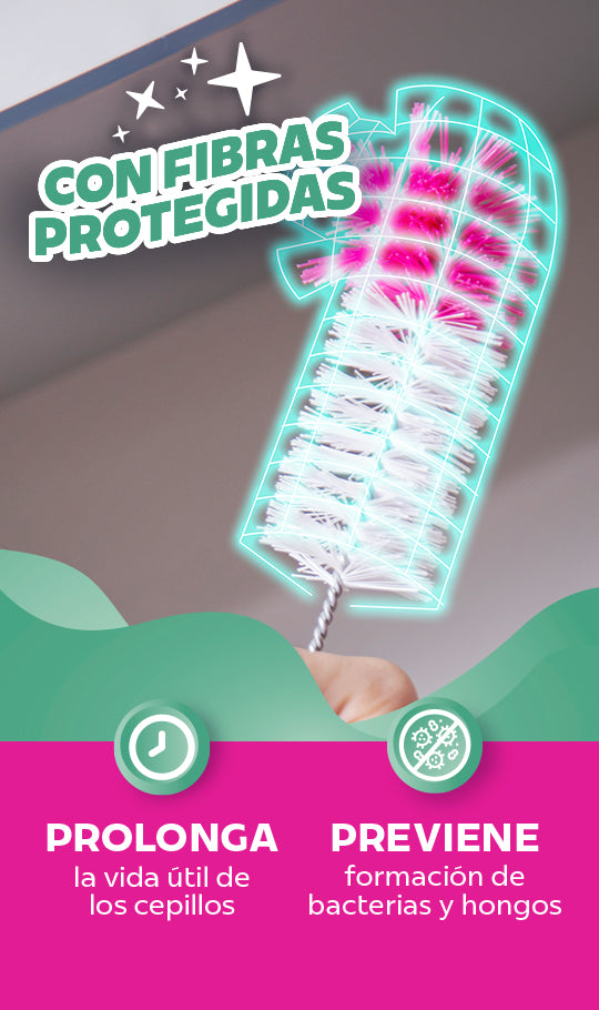 Cepillo para termos y recipientes profundos. Su diseño alargado permite llegar al fondo removiendo la suciedad y la forma de su mango permite un mejor agarre. Con fibras protegidas que generación de hongos y bacterias alargando la vida útil de tu cepillo.