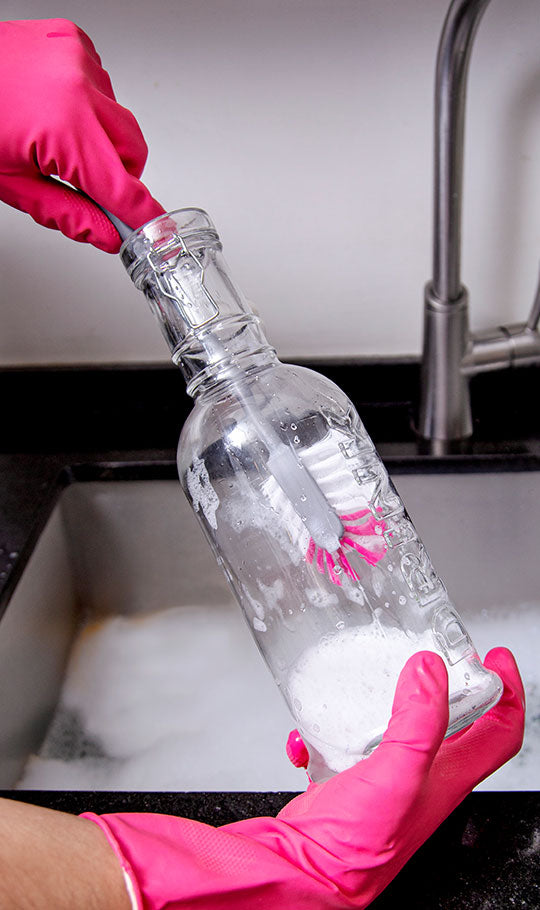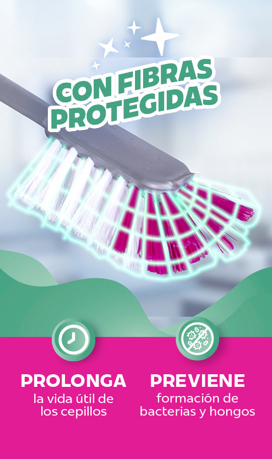 Sus fibras suaves pero resistentes limpian todo tipo de vasos y recipientes angostos sin rayar ni maltratar. Su mango largo y ergonómico permitirá llegar a lugares más profundos de una manera más cómoda. Sus fibras protegidas evitan generación de hongos y bacterias.
