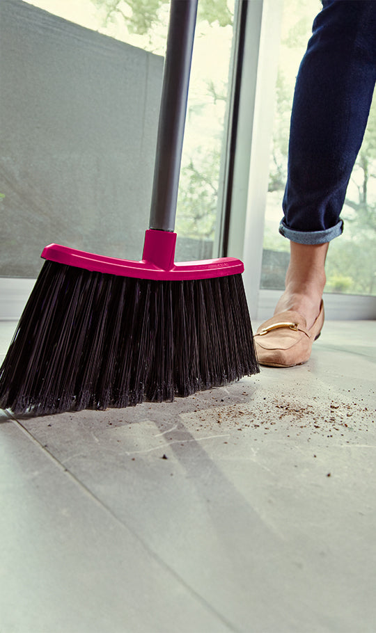 Escoba práctica y ligera, perfecta para interiores y exteriores del hogar. Diseñada con fibra de alta calidad y punta desplumillada para retener el polvo con mayor facilidad. Gracias a su tamaño llega a lugares angostos.