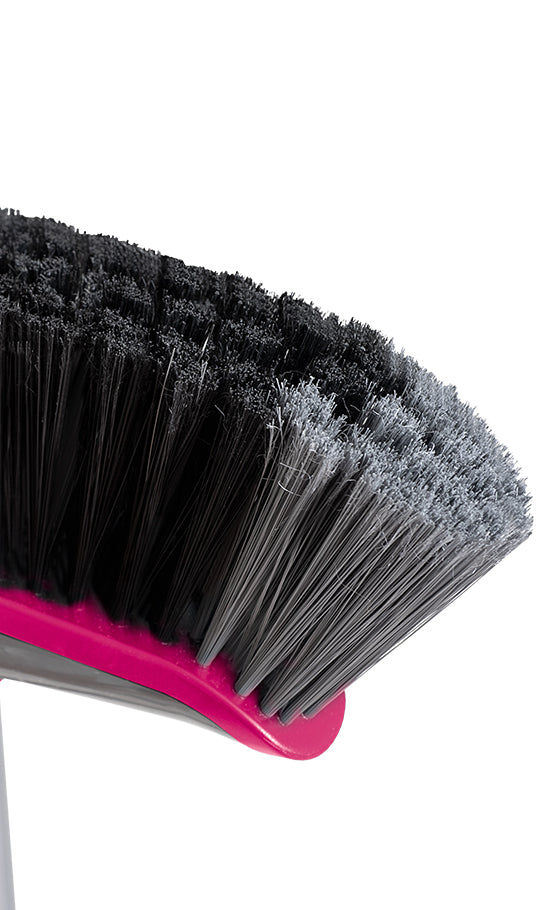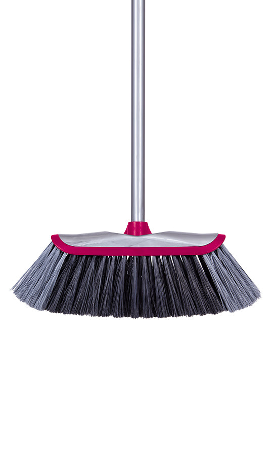 Escoba diseñada con fibras suaves y orillas desplumilladas, además por sus extremos en forma angular previenen los golpes o tallones en los pisos. Perfectos para la limpieza con cuidado del hogar