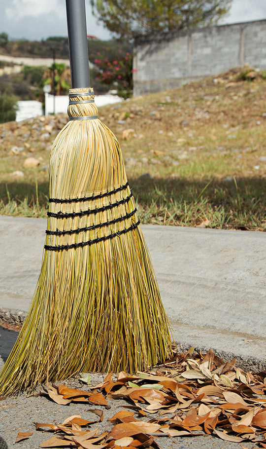 Escoba firme y resistente al agua, perfecta para barrer el patio o cochera de tu hogar. Materiales 100% naturales y elaborada de forma artesanal, con mango ancho y acojinado para mejor agarre y firmeza excepcional para un barrido intenso.