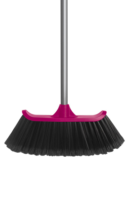 Escoba con diseño angulado que ofrece una mayor cobertura de barrido mientras sus orillas angulares evitan rayar paredes. Su mango y bloque reforzado son la combinación perfecta para un barrido con fuerza.