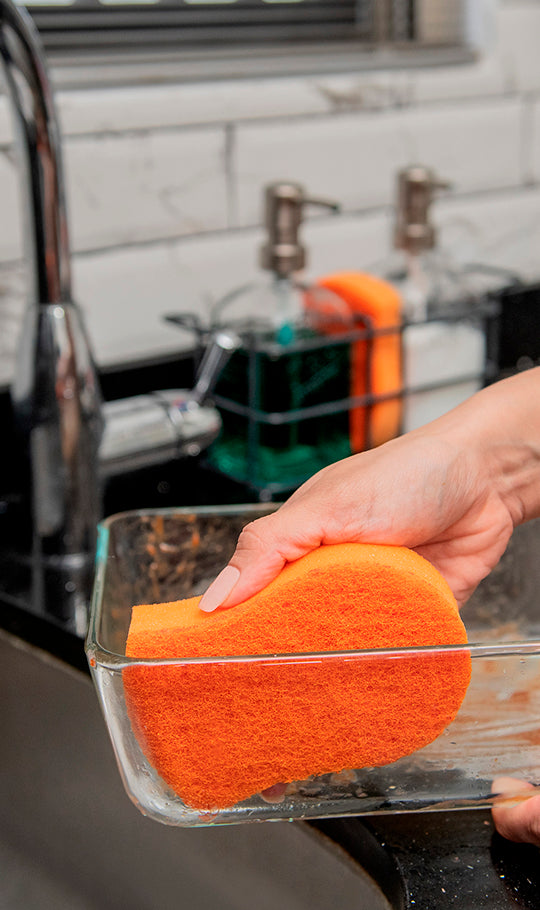 La Fibra Esponja Hogar brinda a tus utensilios una limpieza más profunda mientras cuida tus manos, eliminando cochambre y suciedad, su forma ergonómica permite un agarre más cómodo y sus esquinas anguladas limpian áreas difíciles de alcanzar.