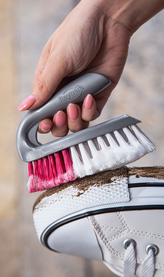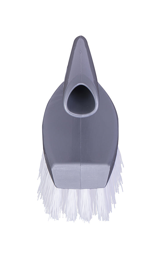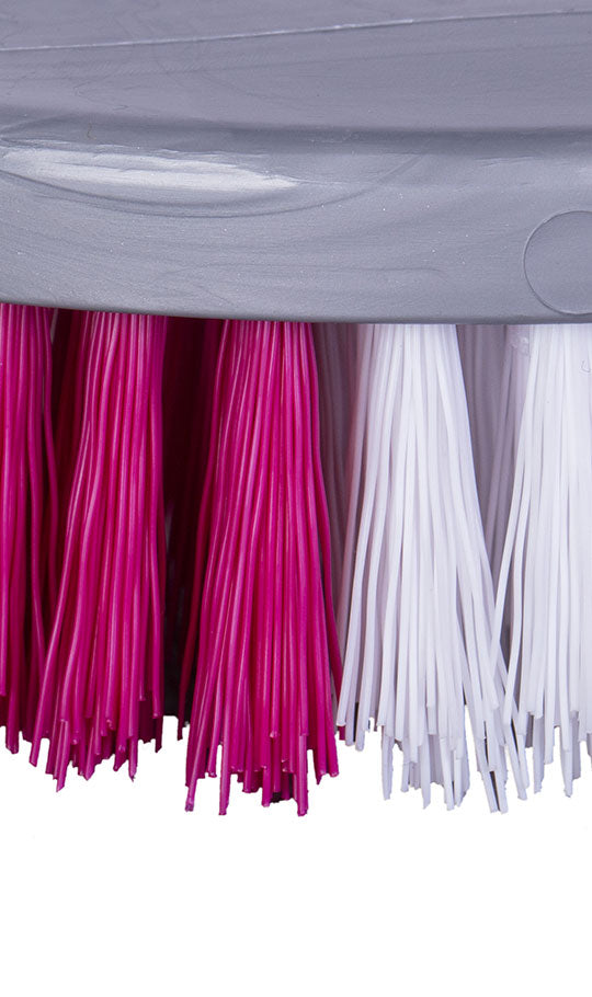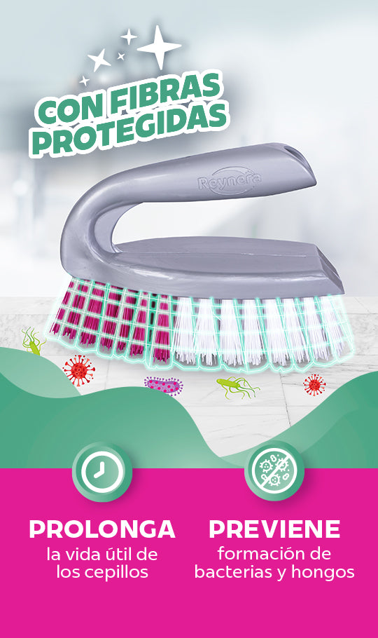 Posee un mango más resistente y ergonómico para un cómodo agarre. Su diseño de punta puede llegar fácilmente a esquinas. Cuenta con una práctica espátula en la parte trasera para tallar o remover manchas difíciles. Sus fibras protegidas evitan la generación de hongos y bacterias alargando la vida útil de tu cepillo.