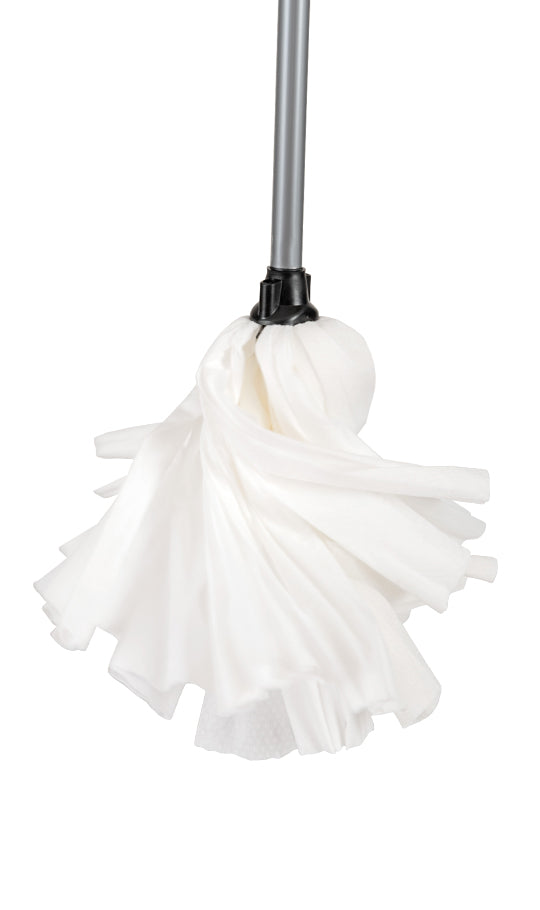 Mop de tela de alta calidad que absorbe 8 veces más su peso brindando un excelente secado, es ligero lo que permite una limpieza más rápida, su material no deja pelusa al trapear y brinda un secado rápido. Cuenta con un mango extra largo que brinda mejor agarre.