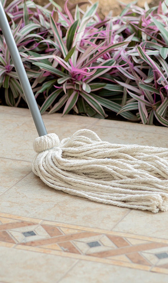 Fabricado 100% de algodón, por su absorbencia y tamaño es para todo tipo de pisos ya sea interiores o exteriores (cochera, porche o terraza). Su mango extra largo hace un trapeado cómodo, evitando el dolor en la espalda baja por el esfuerzo.