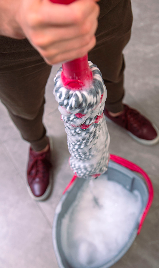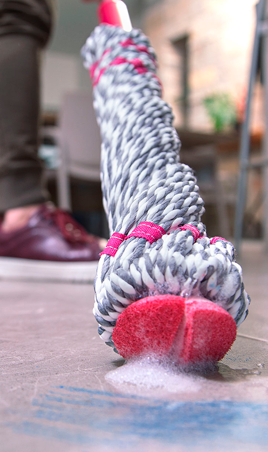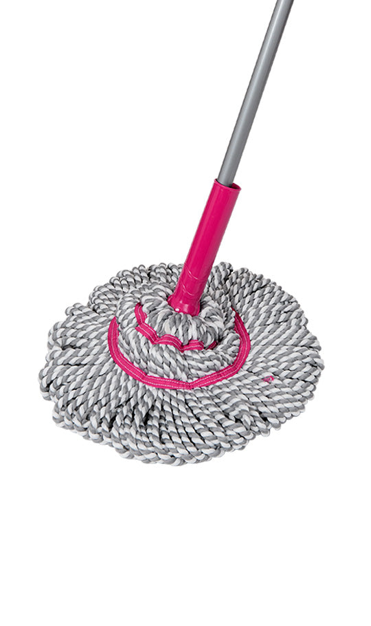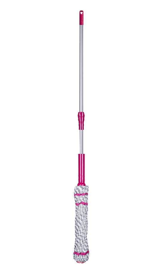 Ideal para una limpieza delicada y tareas pesadas. Con mango extra largo para mayor alcance. Cuenta con una manija exprimidora diseñada especialmente para comprimir la microfibra y eliminar el exceso de agua sin esfuerzo. Gracias a su doble banda, cubre gran superficie de limpieza sin enredarse.