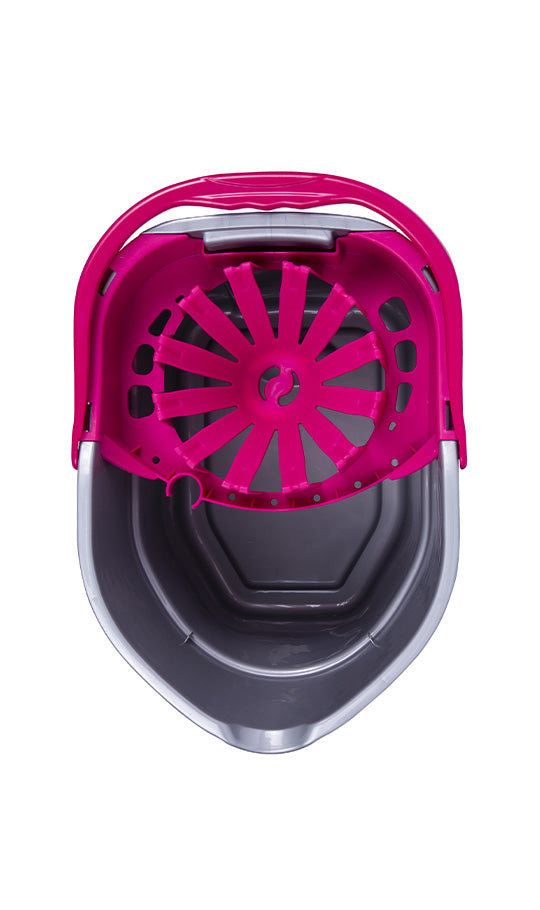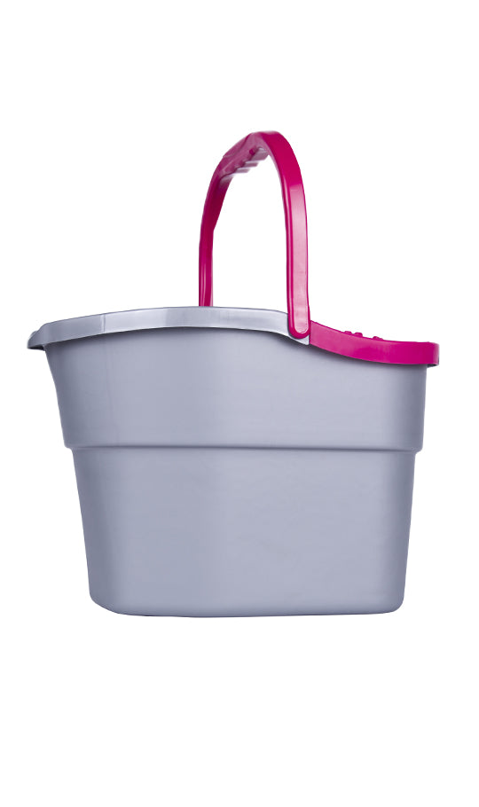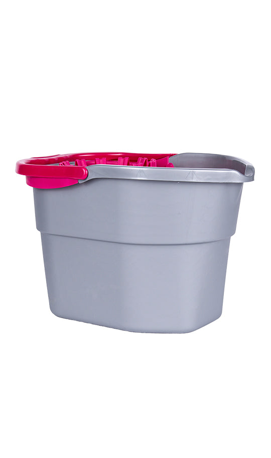 Cubeta con capacidad para 12 litros de agua, con práctico exprimidor integrado que evita mojar tus manos. Cuenta con una asa para trasladarla con facilidad, además de un agarre para verter el agua al término de su uso.